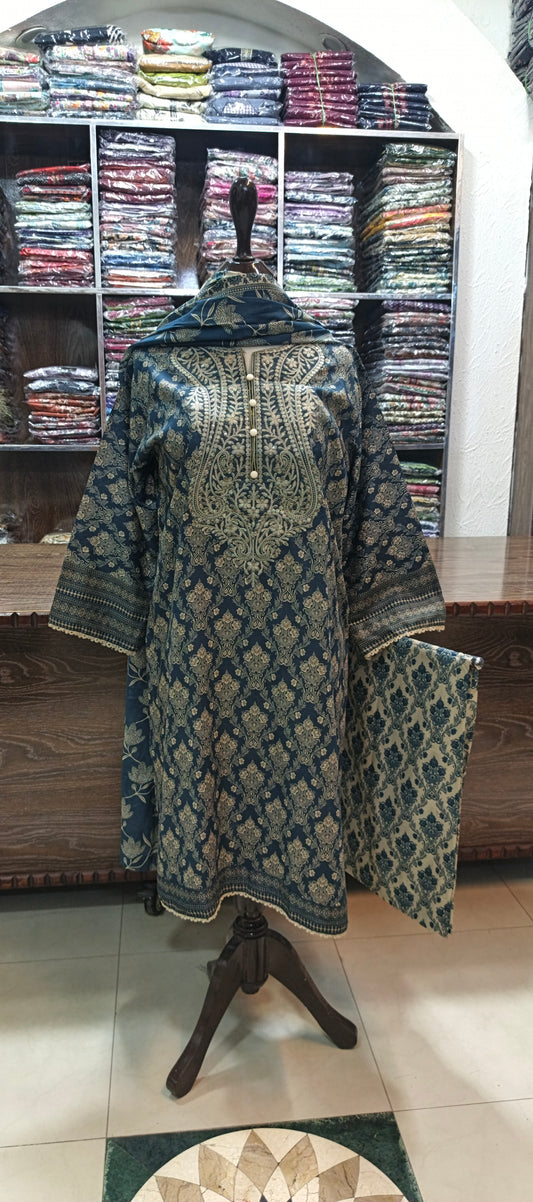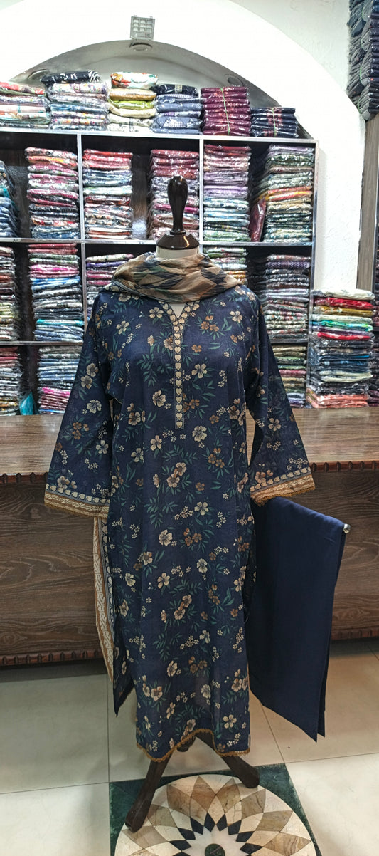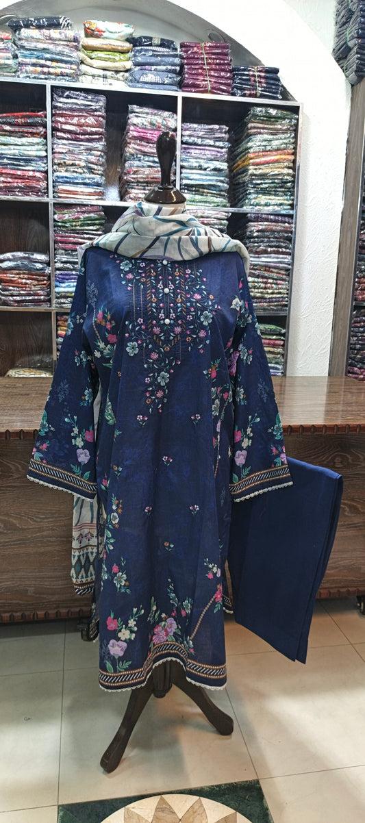 HZ EMBROIDERED PREMIUM LAWN STICHED Shirt TROUSER 3 PC nvy