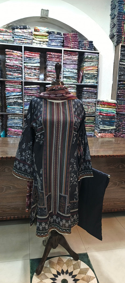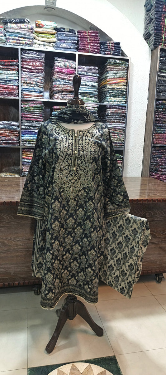 Hz embroidered premium lawn stiched shirt trouser 3 pc blk