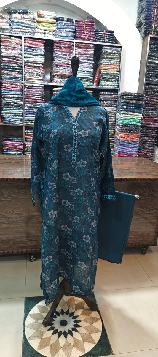 Safina premium lawn stiched shalwar kameez 3pc wtblu