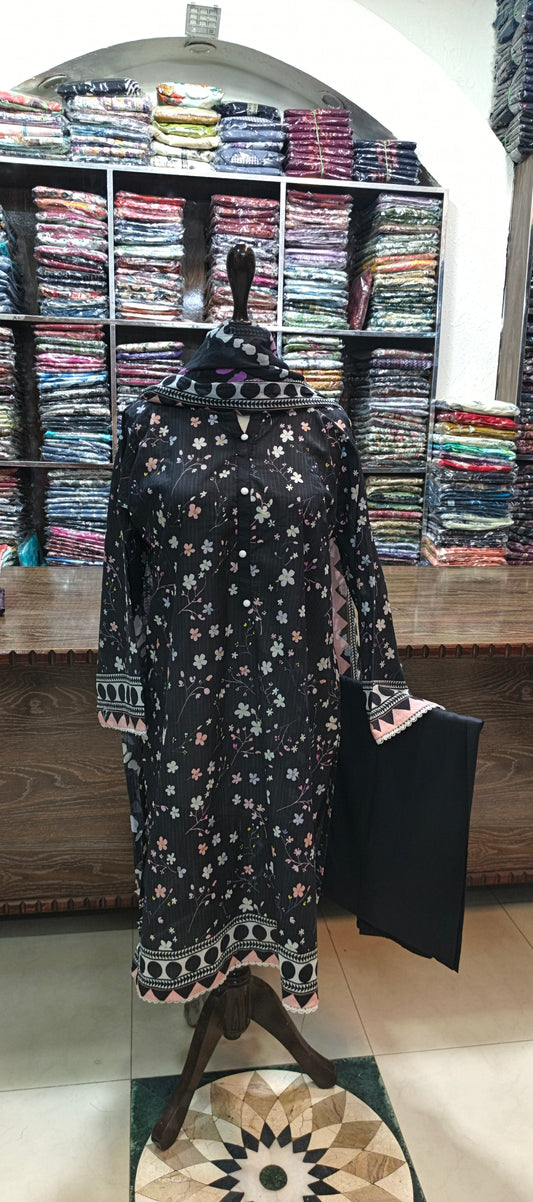 Safina premium lawn stiched shirt trouser 3pc blkmrn