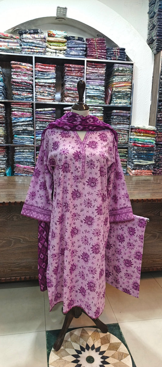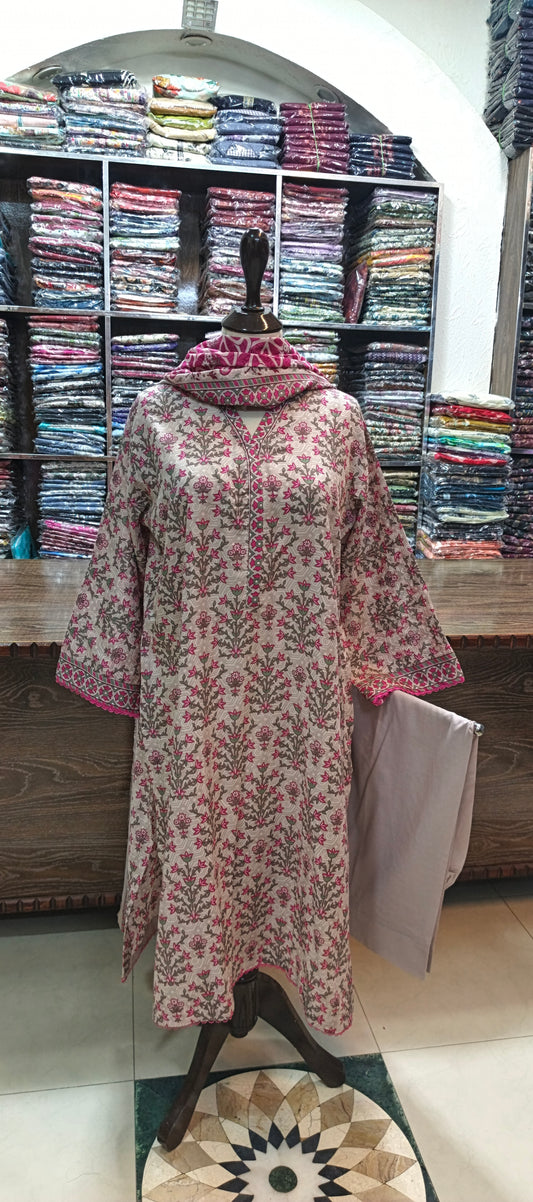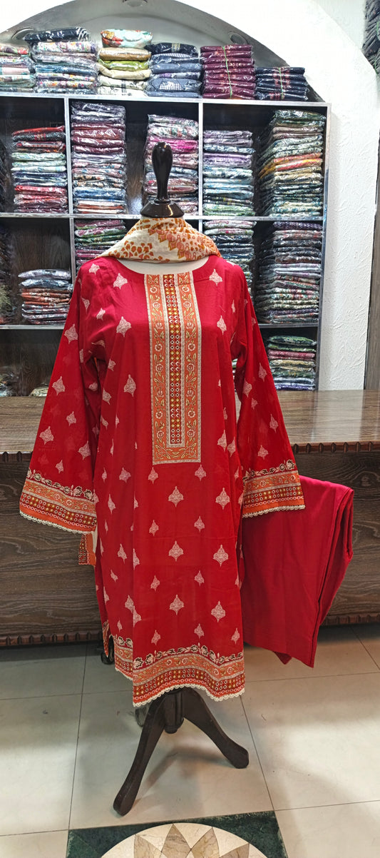 Hz embroidered premium lawn stiched shirt trouser 3 pc Rd