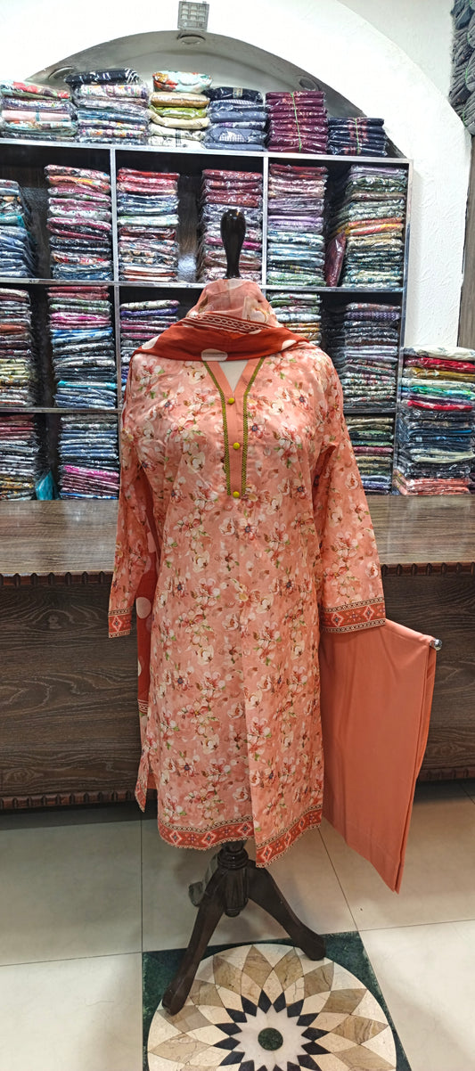 Safina premium lawn stiched shirt trouser 3pc pststrp