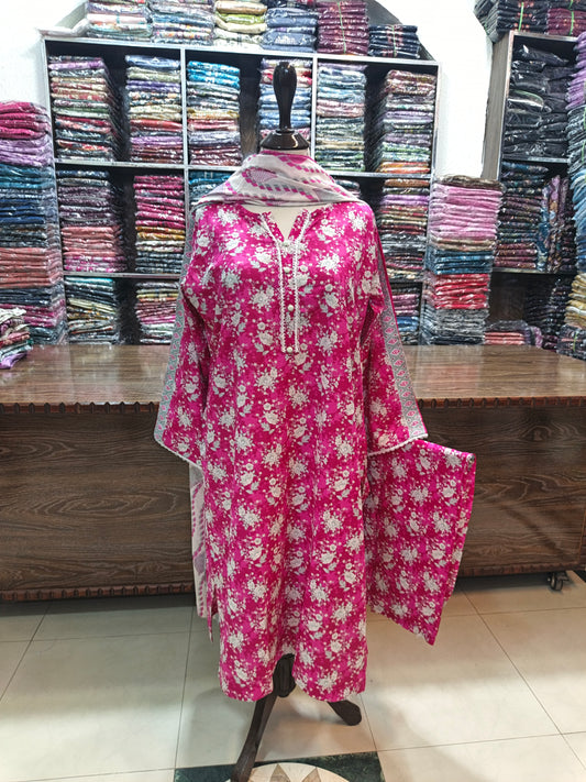 Safina premium lawn stiched shirt trouser 3 pc llacpink