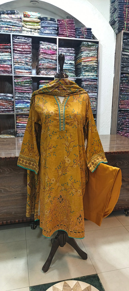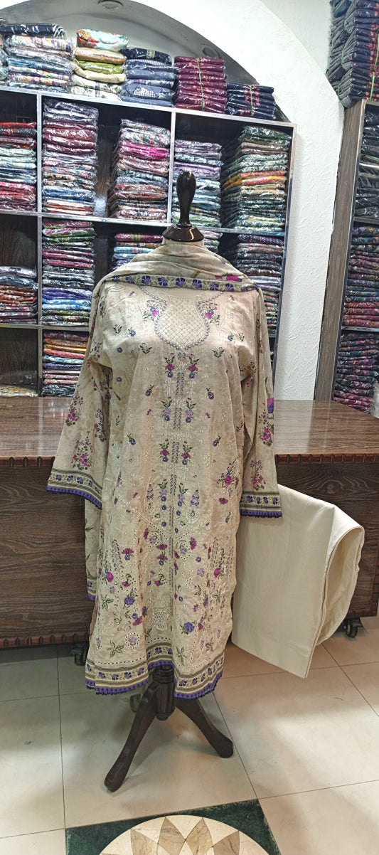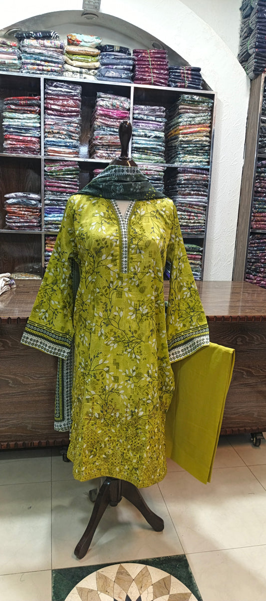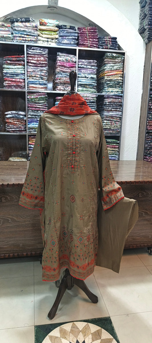 HZ embroidered premium lawn stiched shirt trouser 3 pcCG