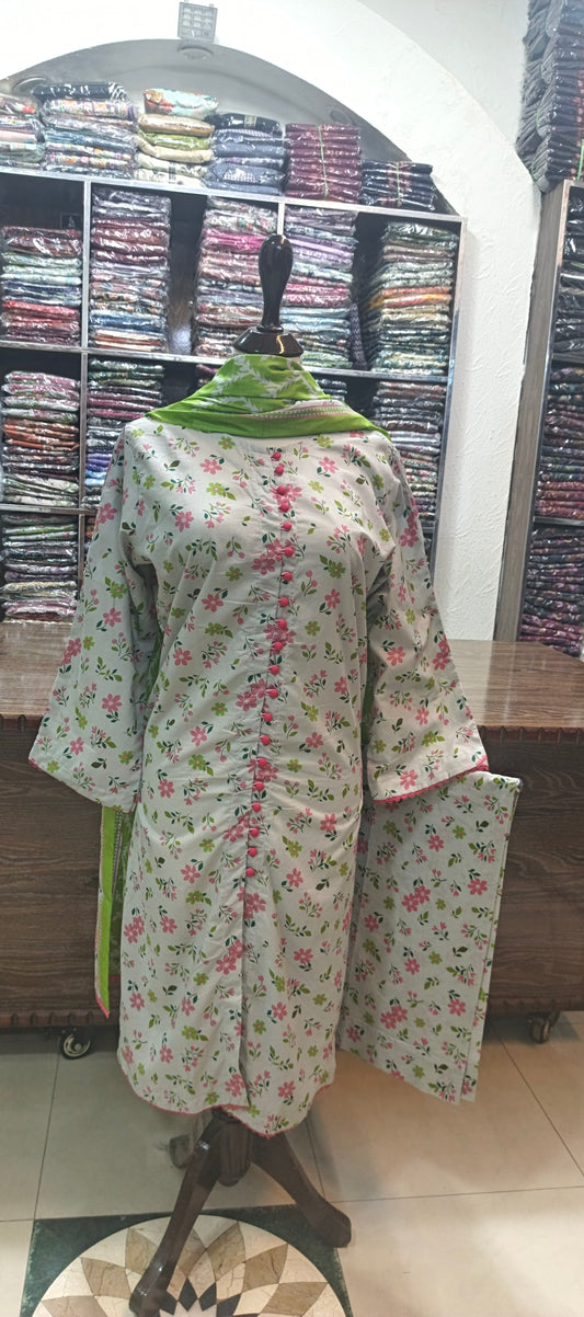 Bin saeed premium lawn stiched shirt trouser 3 pc green