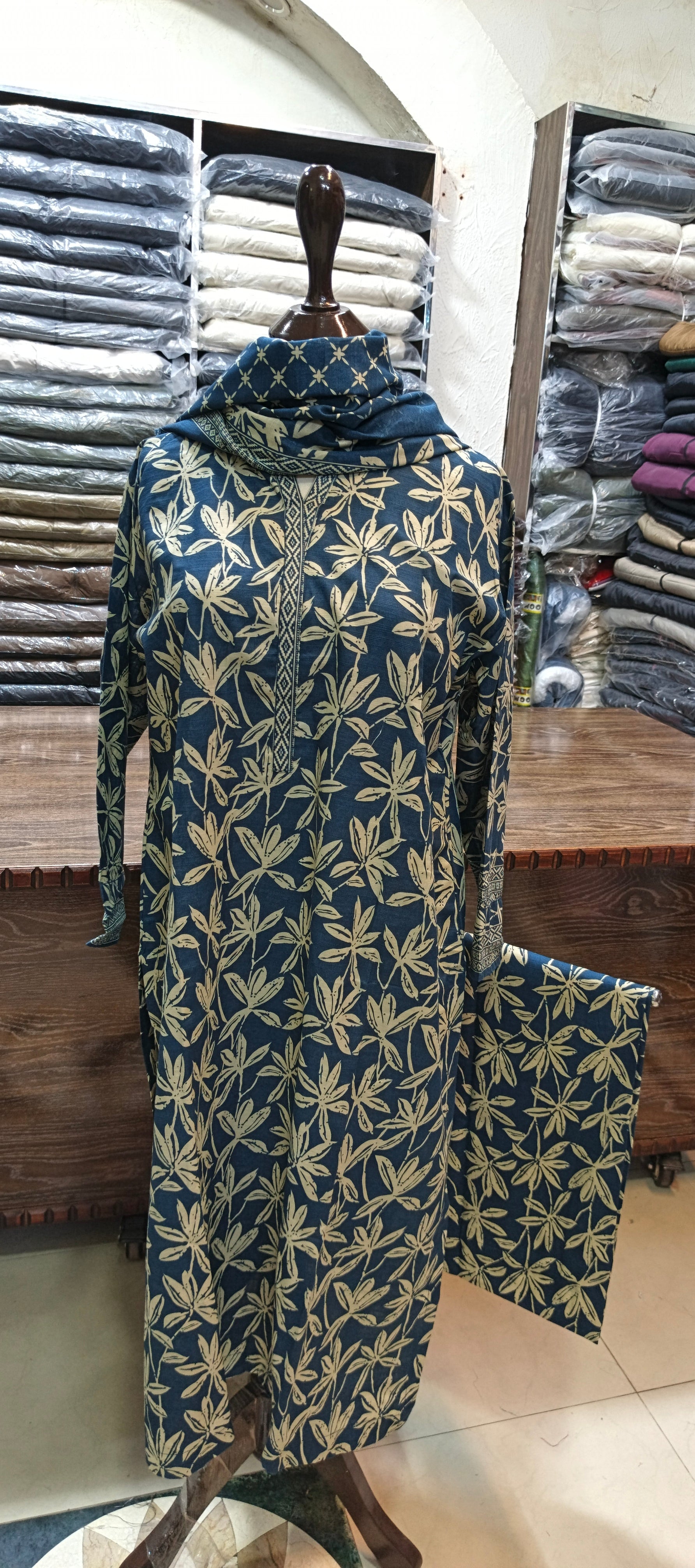 This Bin Saeed khaddar 3 pc suit is the perfect addition to your winter wardrobe. Made with high-quality Bin Saeed branded khaddar, it includes a stiched shirt, trouser, and shawl with a length of 2.5 meters. Stay warm and stylish with this must-have suit.