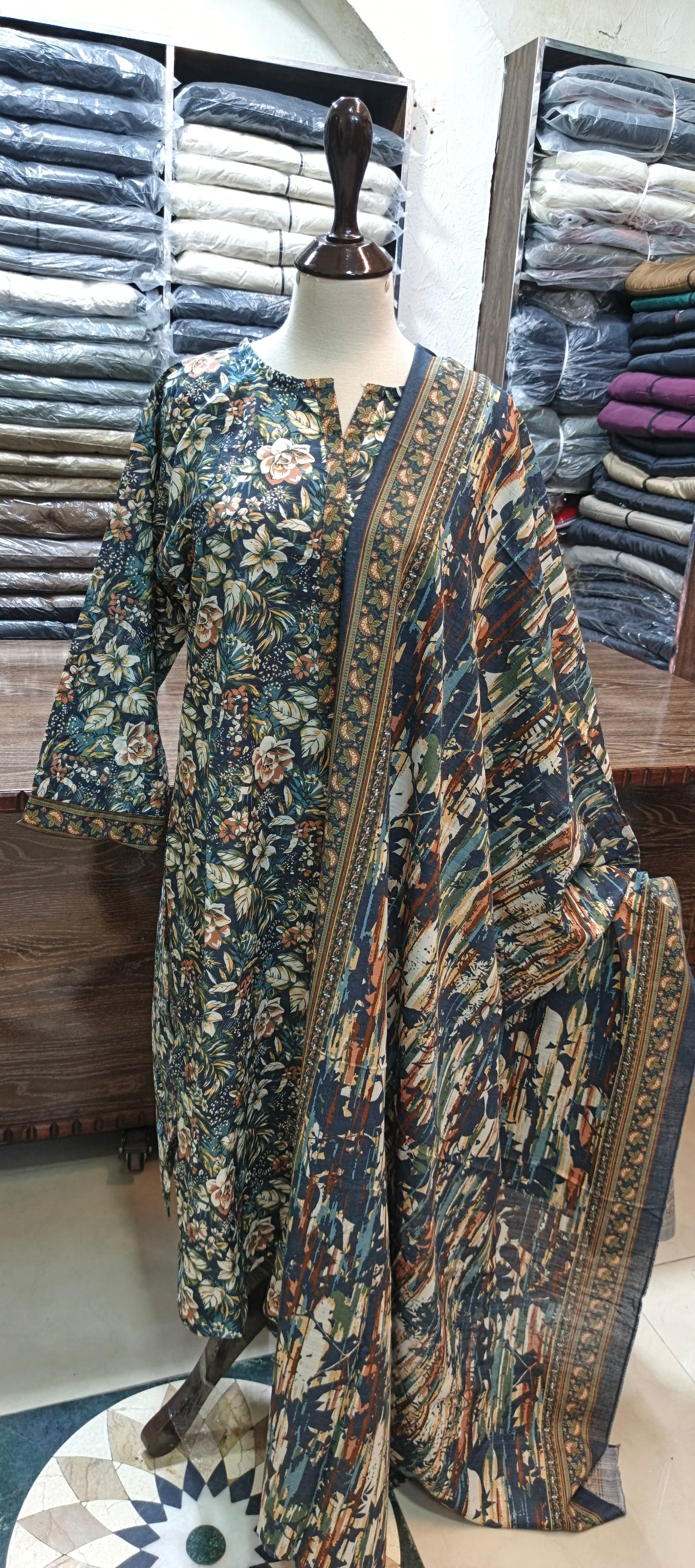 This Bin saeed khaddar 3 pc suit is the perfect addition to your winter wardrobe. Made with high-quality Bin saeed branded khaddar, it includes a stiched shirt, trouser, and shawl with a length of 2.5 meters. Stay warm and stylish with this must-have suit.