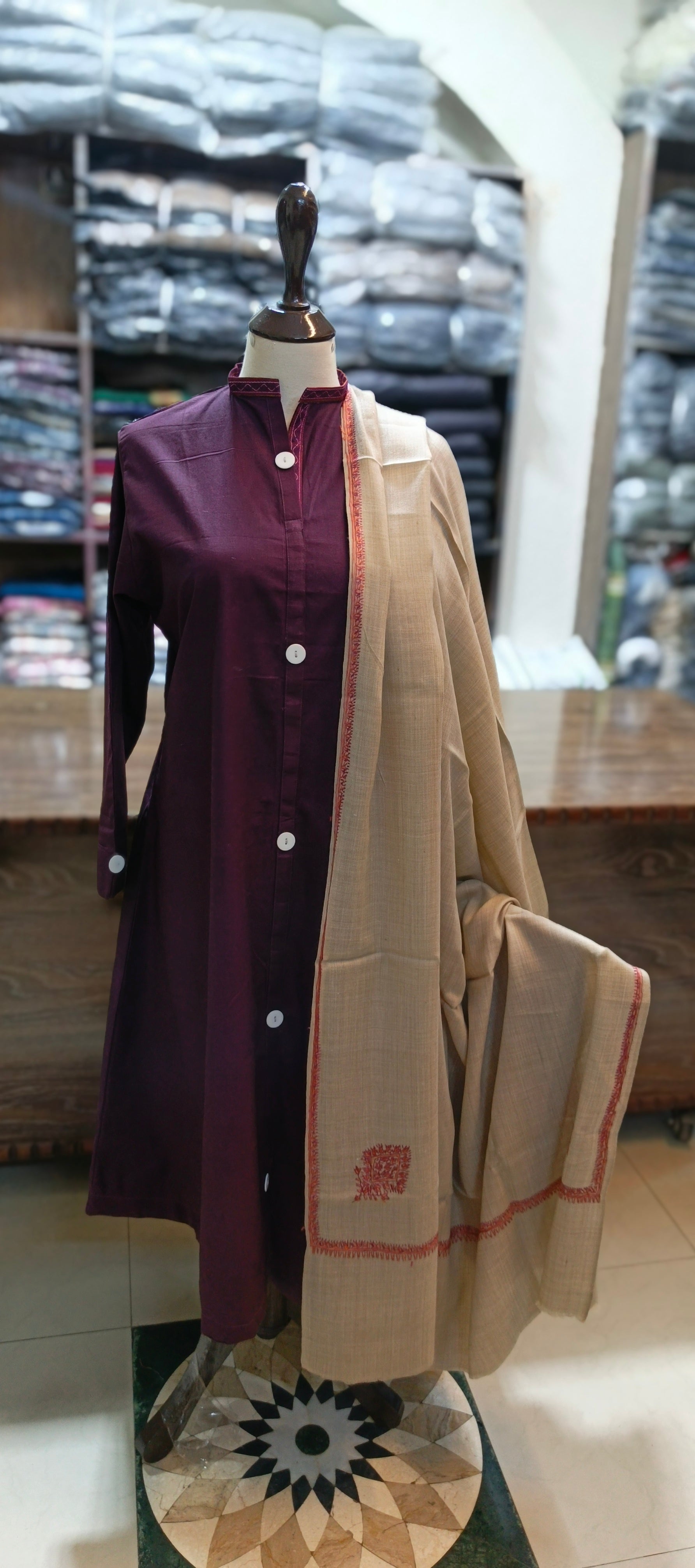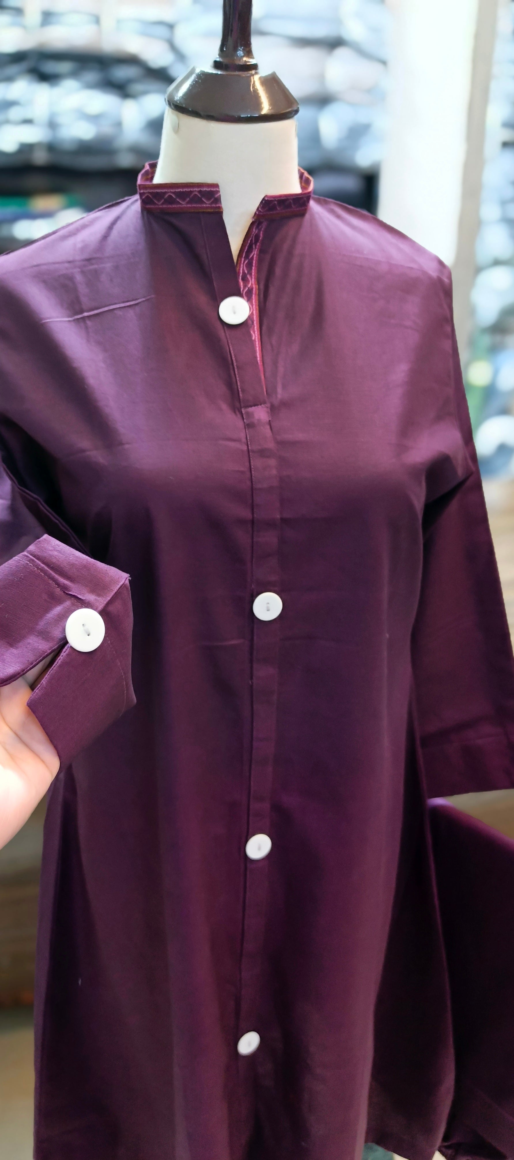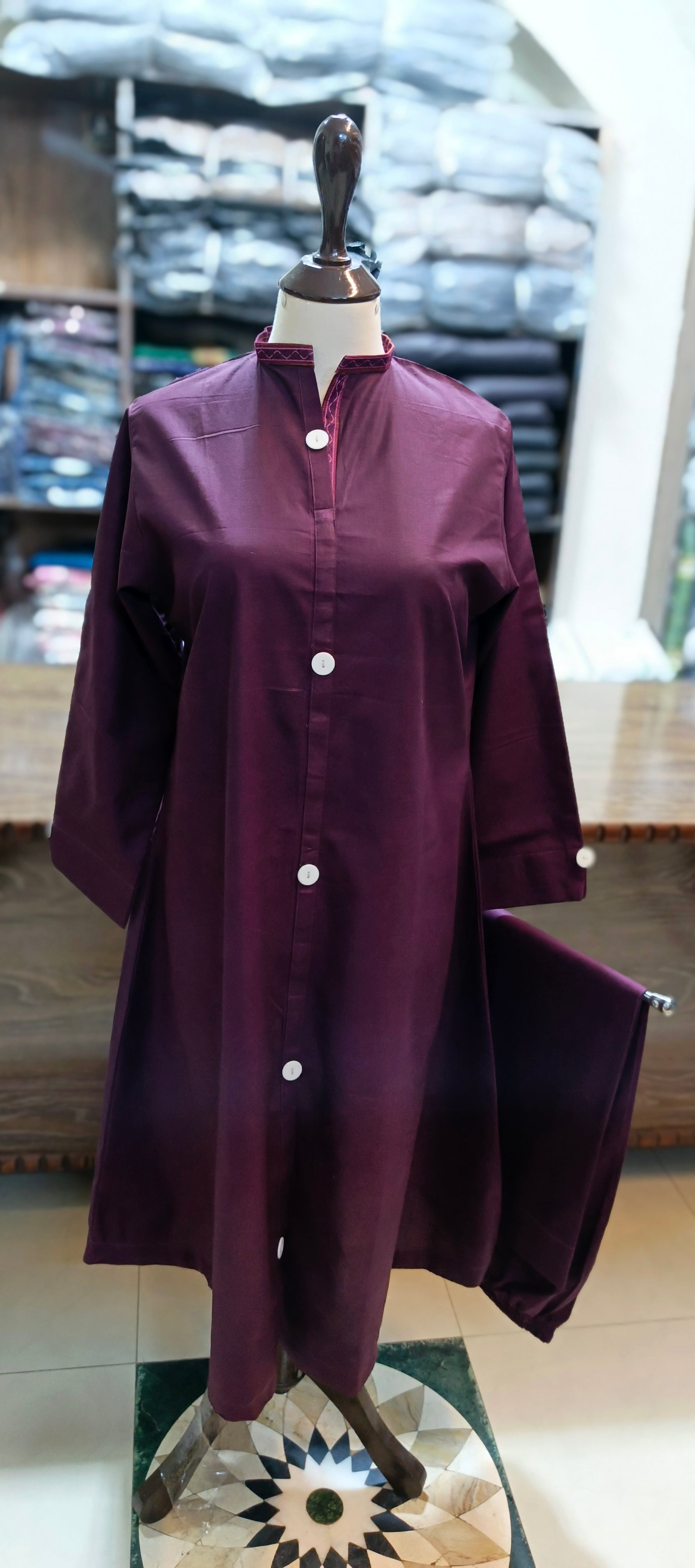 Expertly crafted from bin Saeed soft khaddar, this A-line soft khaddar co Ord set boasts a front open stitch style for a sleek and modern look. Lightweight and breathable, this set is perfect for staying cool and comfortable in warm weather. Elevate your wardrobe with this timeless and versatile piece.