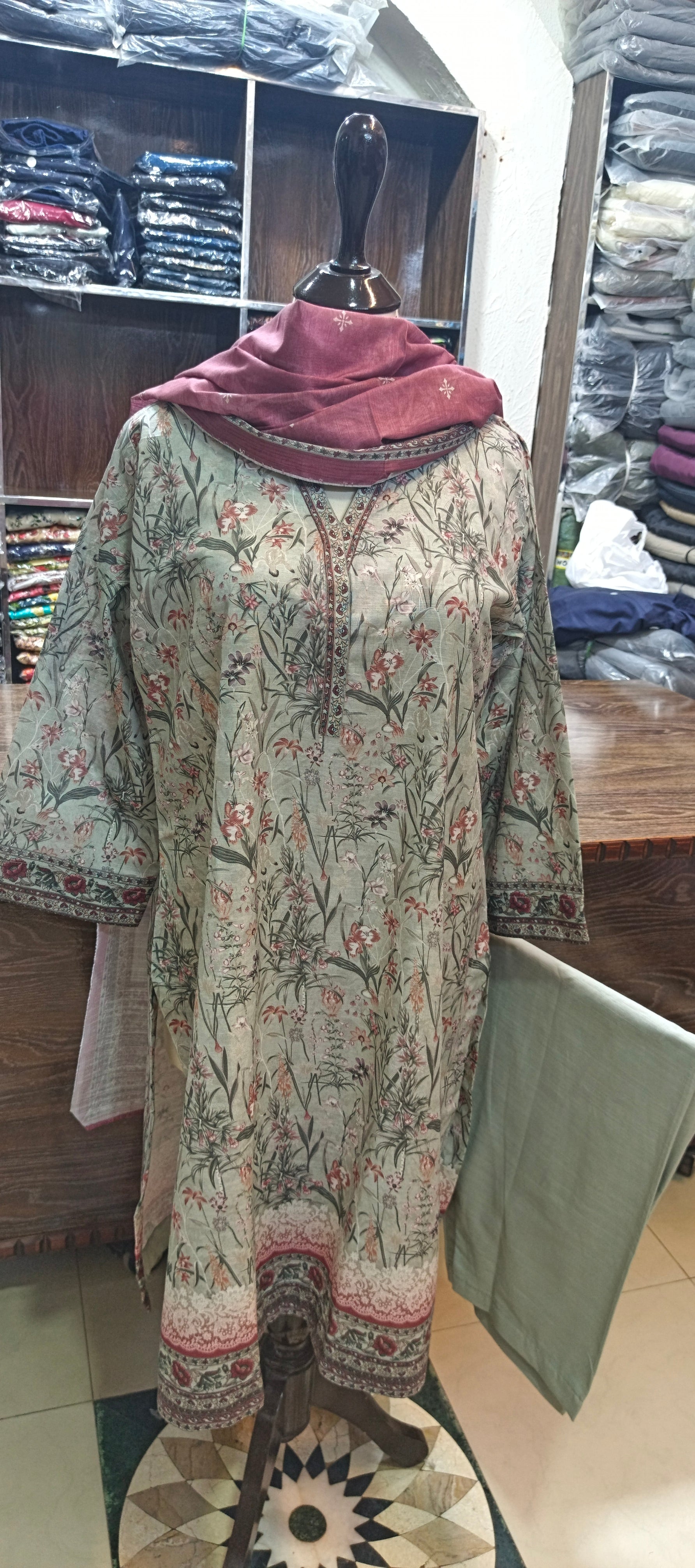 Enhance your wardrobe with our expertly tailored bin Saeed khaddar shalwar kameez 3 pc set. Made from premium khaddar, this stitched pair offers both style and comfort. A versatile addition to your collection, perfect for any occasion.