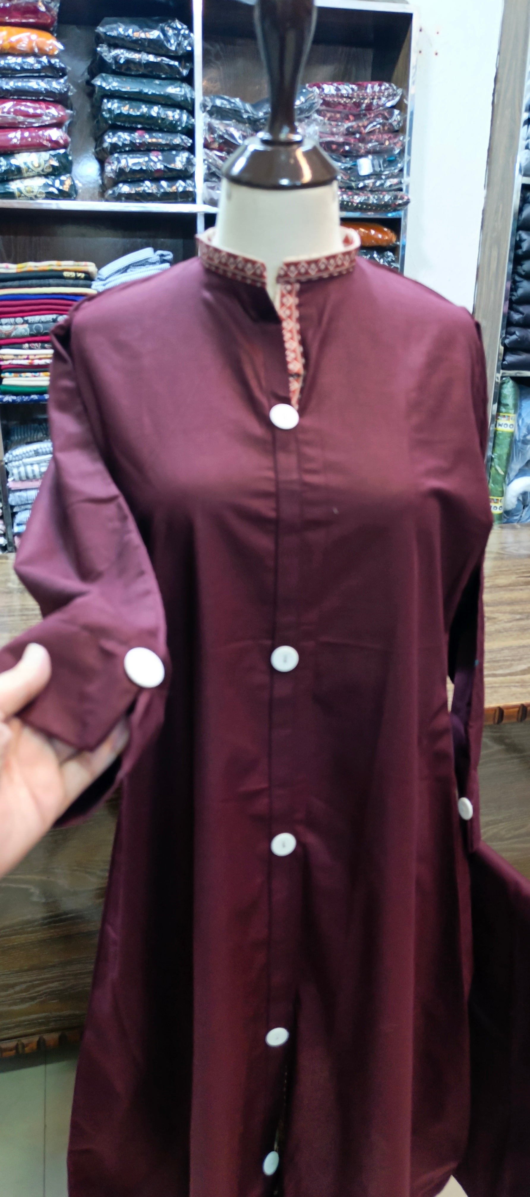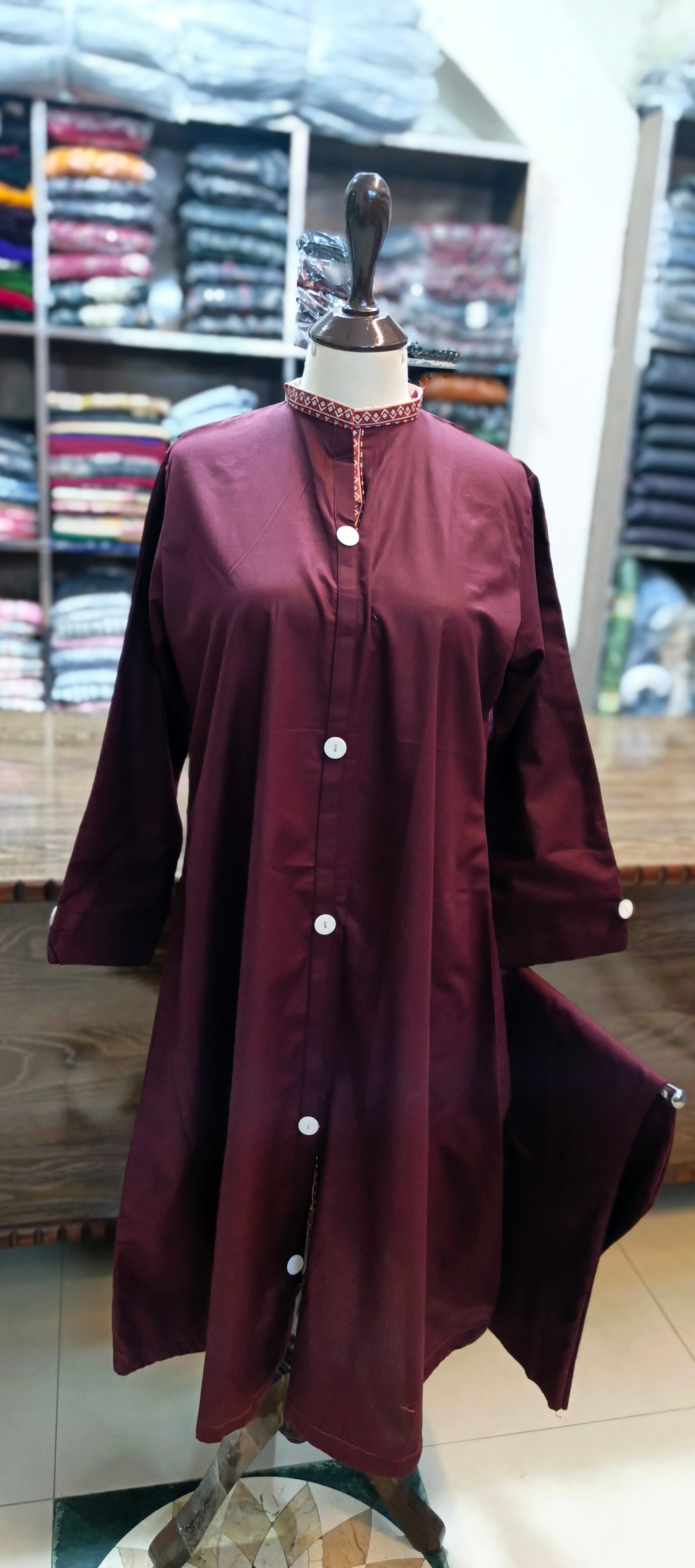 Expertly crafted from bin Saeed soft khaddar, this A-line soft khaddar co Ord set boasts a front open stitch style for a sleek and modern look. Lightweight and breathable, this set is perfect for staying cool and comfortable in warm weather. Elevate your wardrobe with this timeless and versatile piece.
