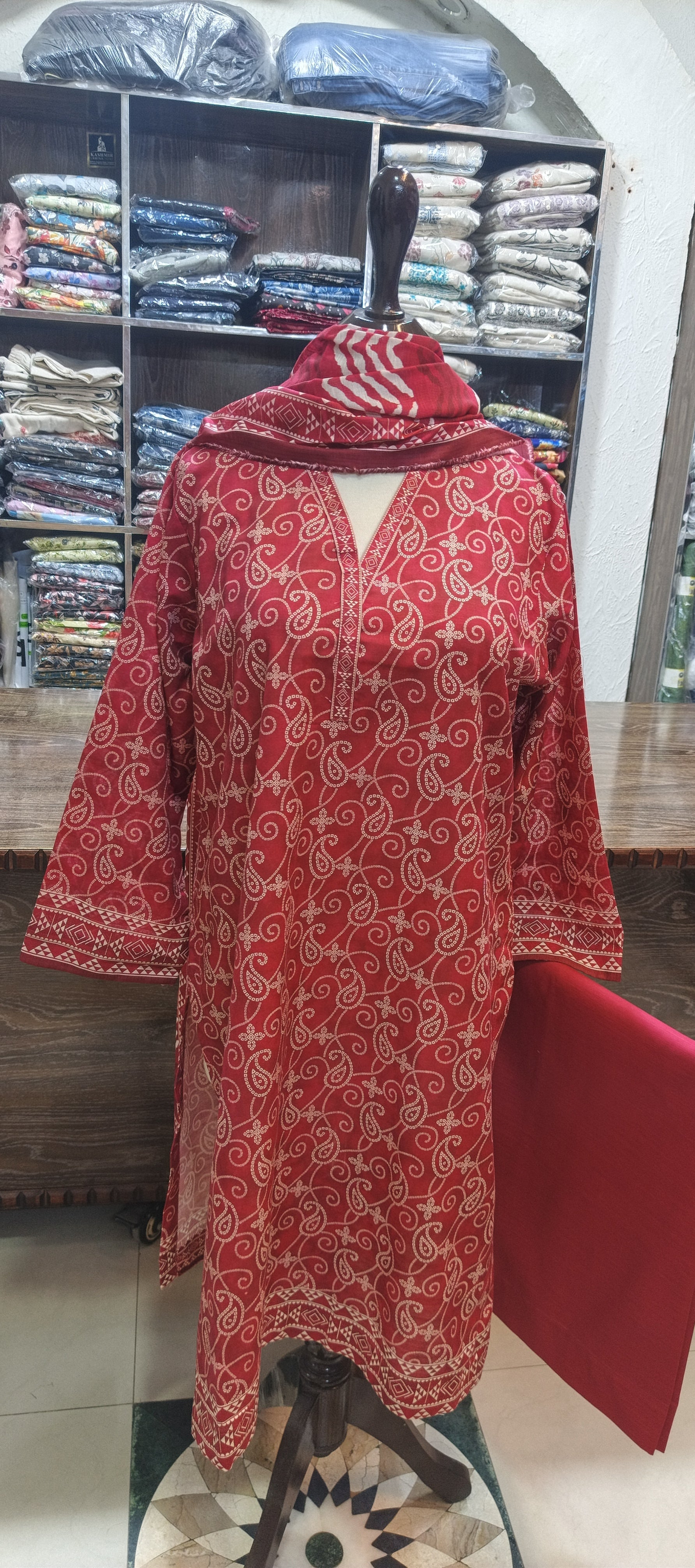 Bin saeed khaddar stiched shirt trouser 3 pc