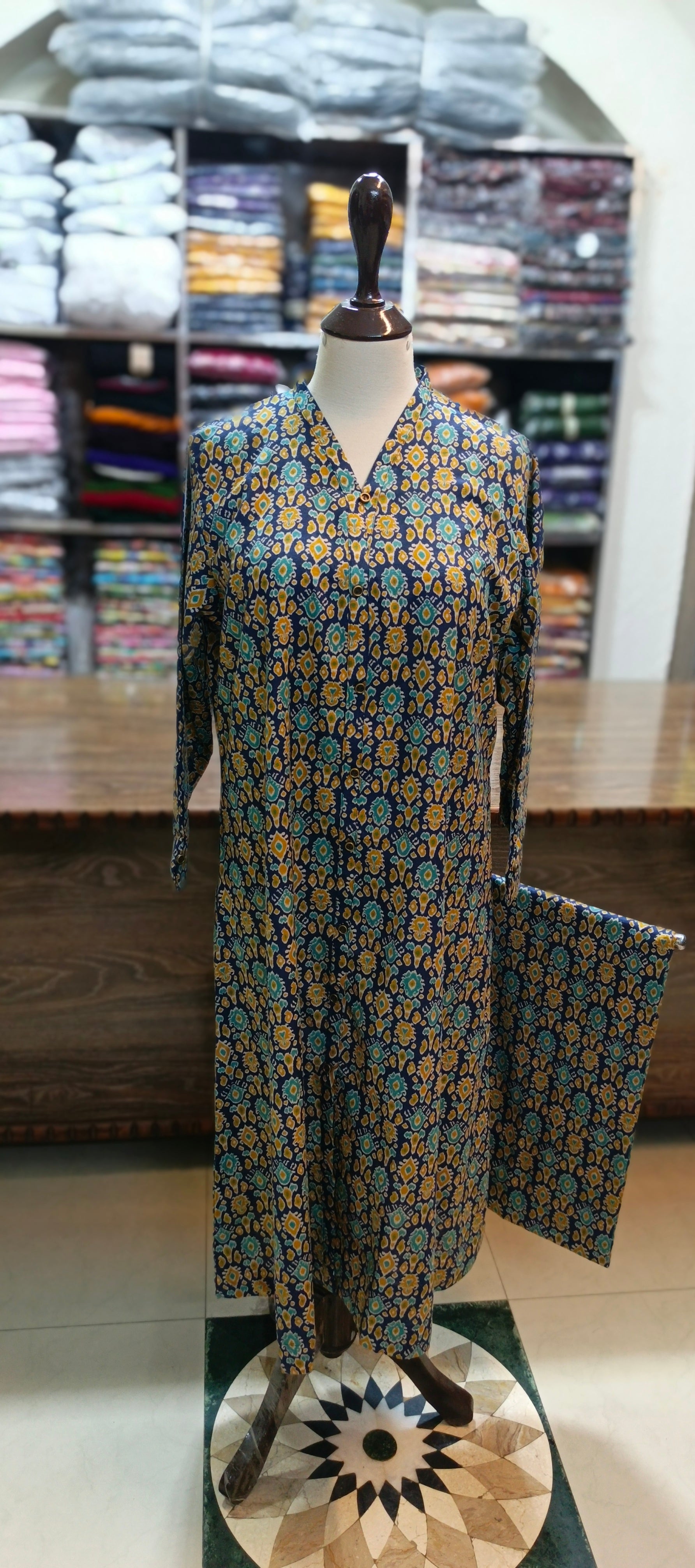 Expertly crafted from bin Saeed soft khaddar, this A-line soft khaddar co ord set boasts a front open stitch style for a sleek and modern look. Lightweight and breathable, this set is perfect for staying cool and comfortable in warm weather. Elevate your wardrobe with this timeless and versatile piece.