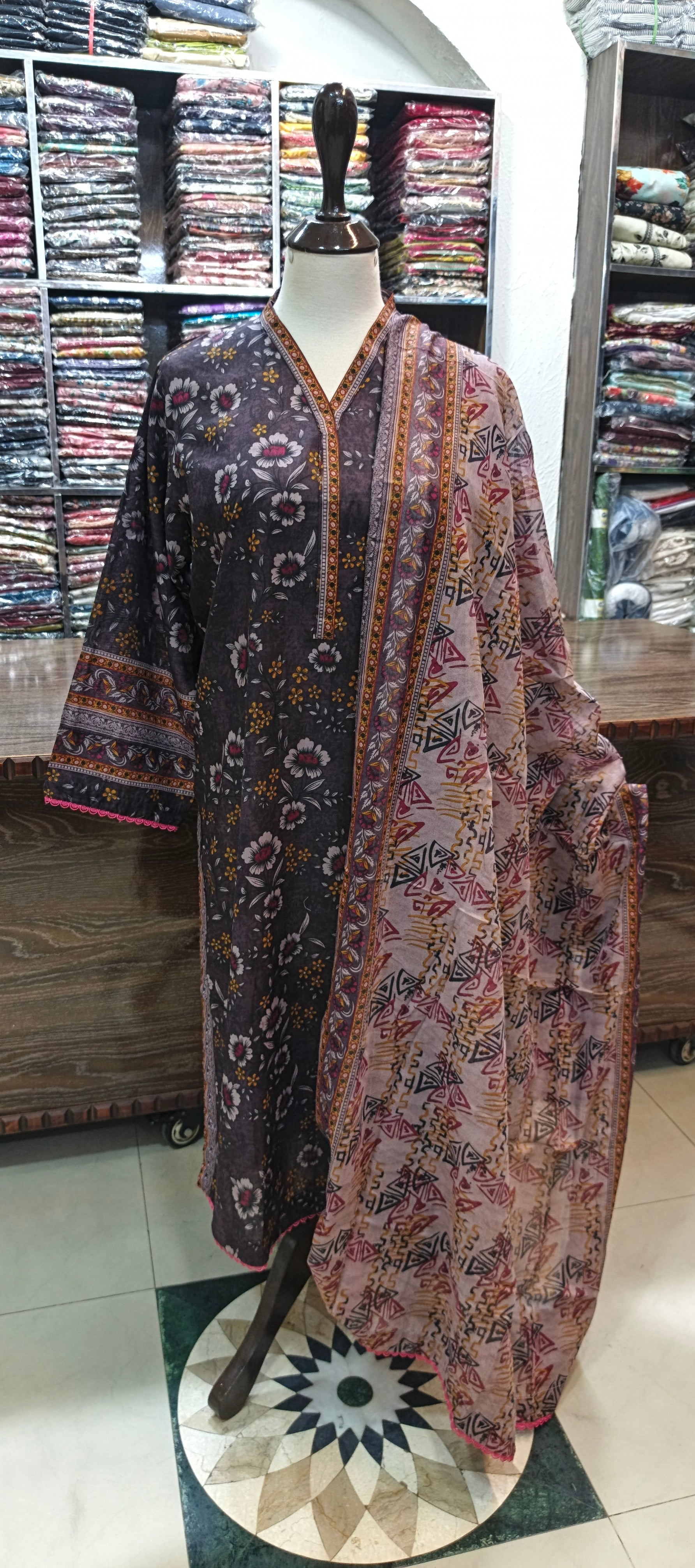 Enhance your wardrobe with our expertly tailored safina premium lawn stiched shalwar kameez 3 pc set. Made from premium lawn this stitched pairs offers both style and comfort. A versatile addition to your collection, perfect for any occasion.chadder 2.5 meter