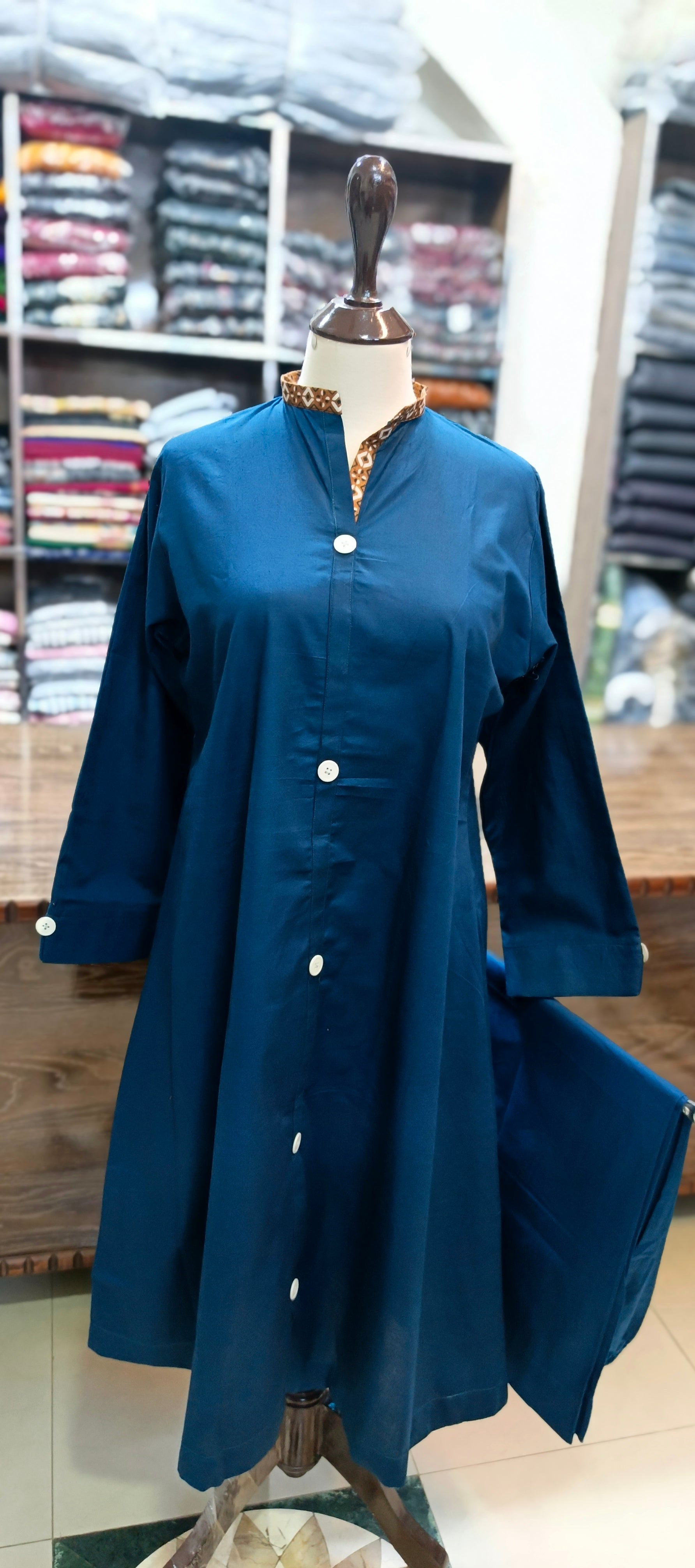 Expertly crafted from bin Saeed soft khaddar, this A-line soft khaddar co Ord set boasts a front open stitch style for a sleek and modern look. Lightweight and breathable, this set is perfect for staying cool and comfortable in warm weather. Elevate your wardrobe with this timeless and versatile piece.