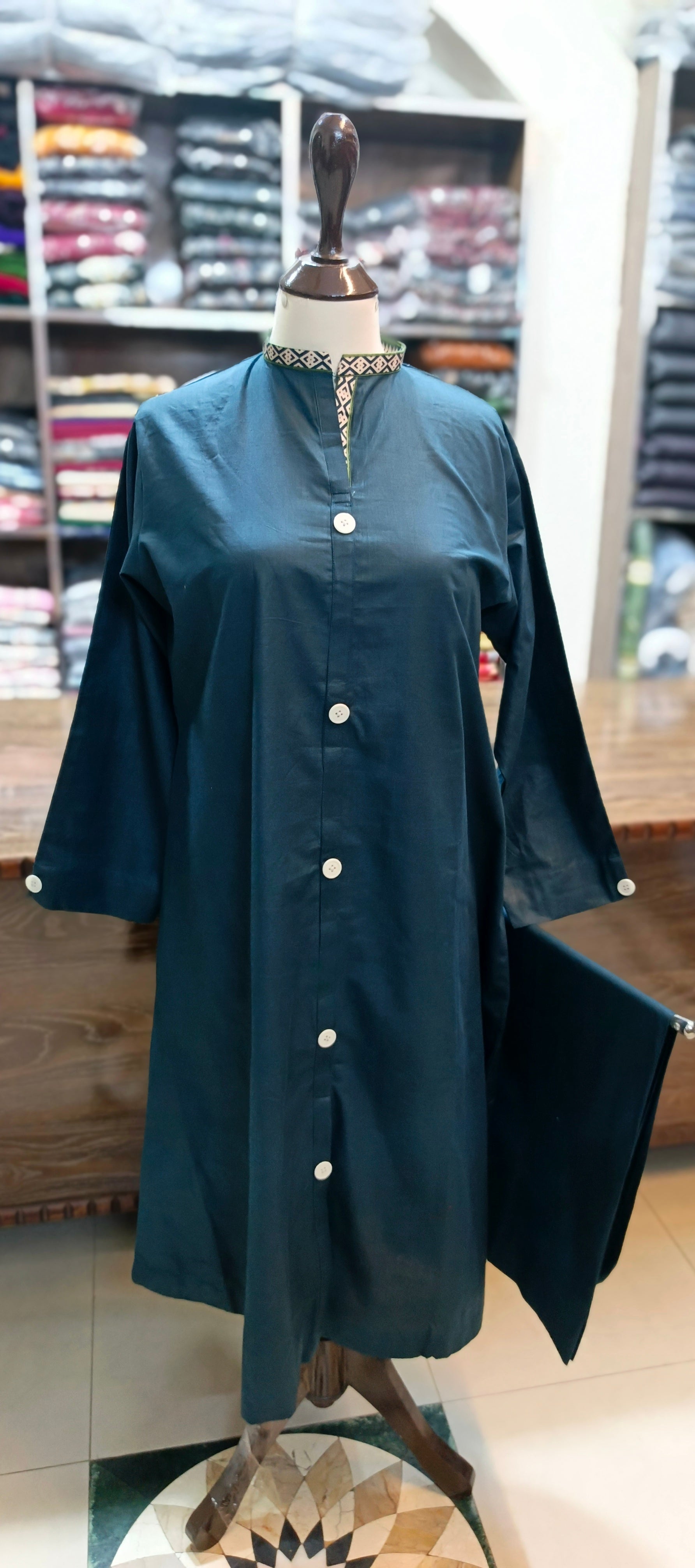 Expertly crafted from bin Saeed soft khaddar, this A-line soft khaddar co Ord set boasts a front open stitch style for a sleek and modern look. Lightweight and breathable, this set is perfect for staying cool and comfortable in warm weather. Elevate your wardrobe with this timeless and versatile piece.
