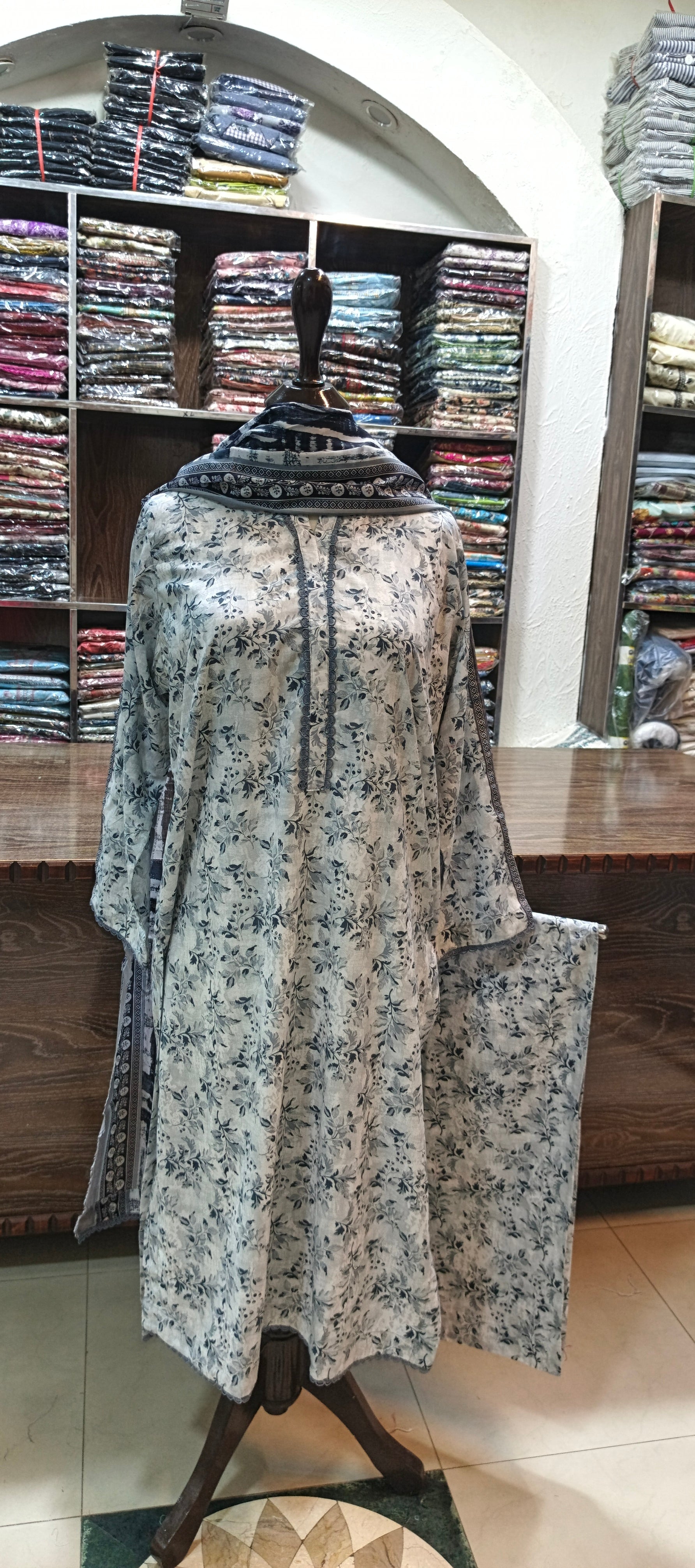 Binsaeed premium lawn stiched long shirt trouser 3 pc