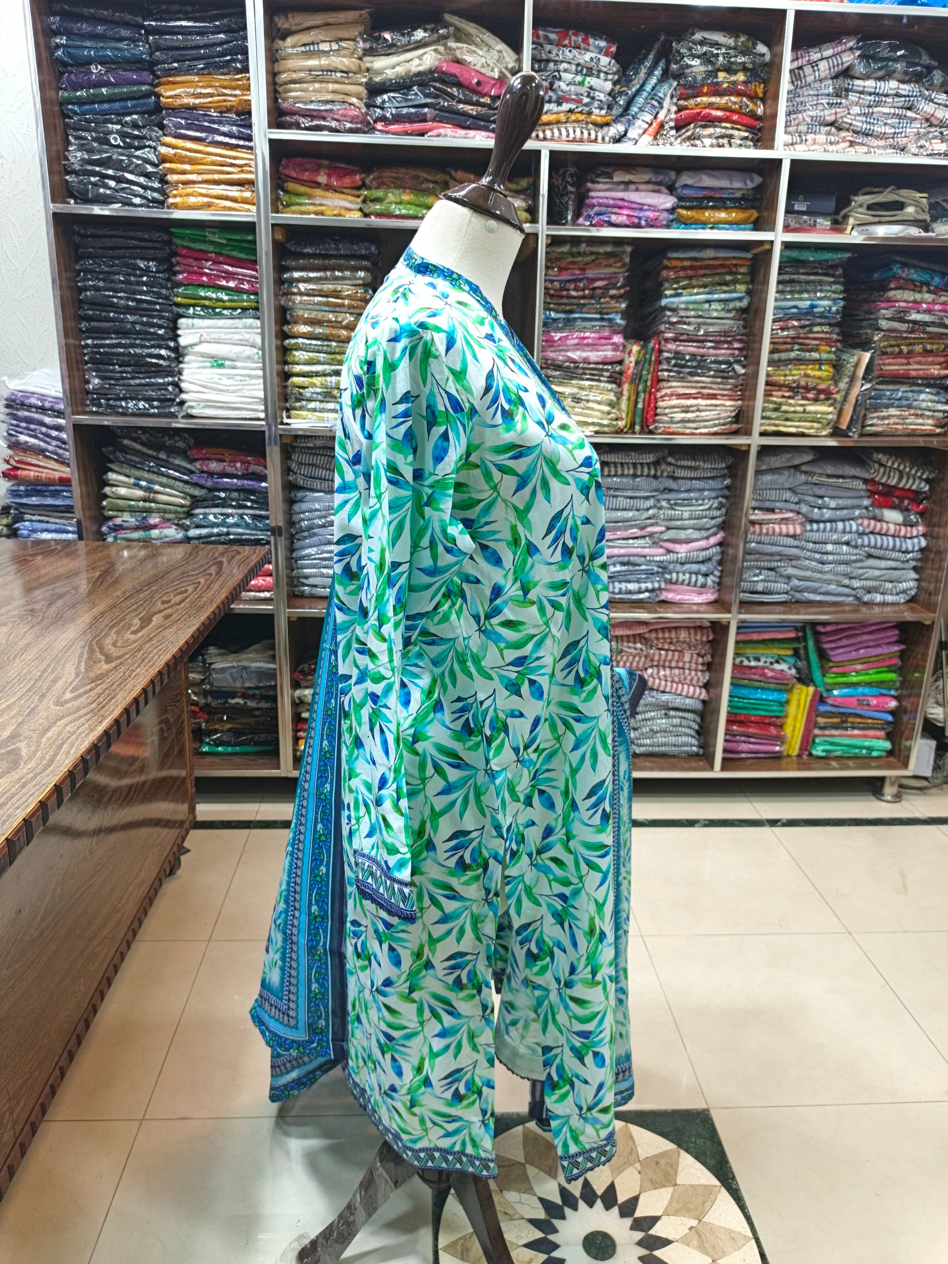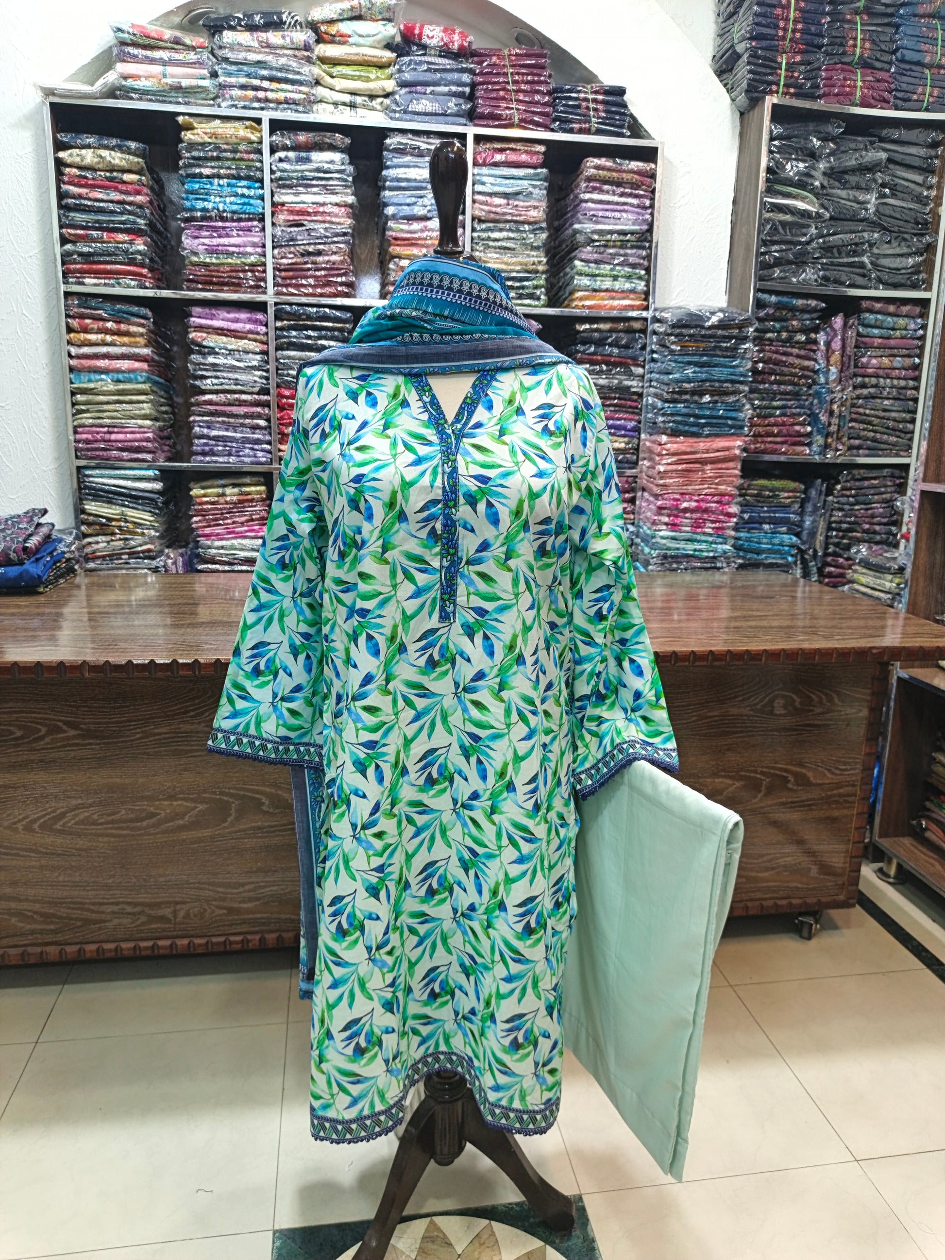 Binsaeed premium lawn stiched shirt trouser stiched 3pc skygrn