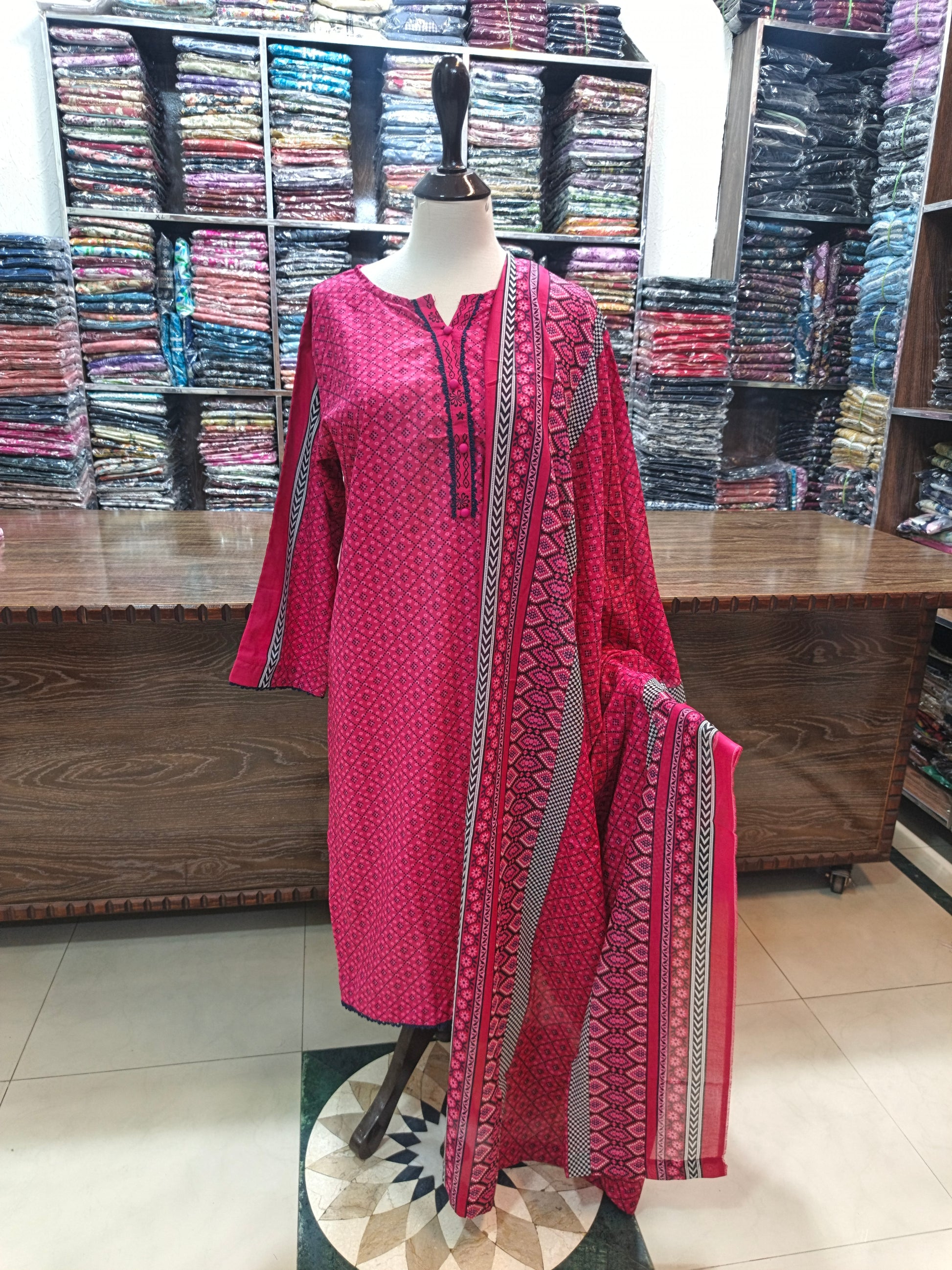 Binsaeed premium lawn stiched shirt trouser stiched 3pc shchun