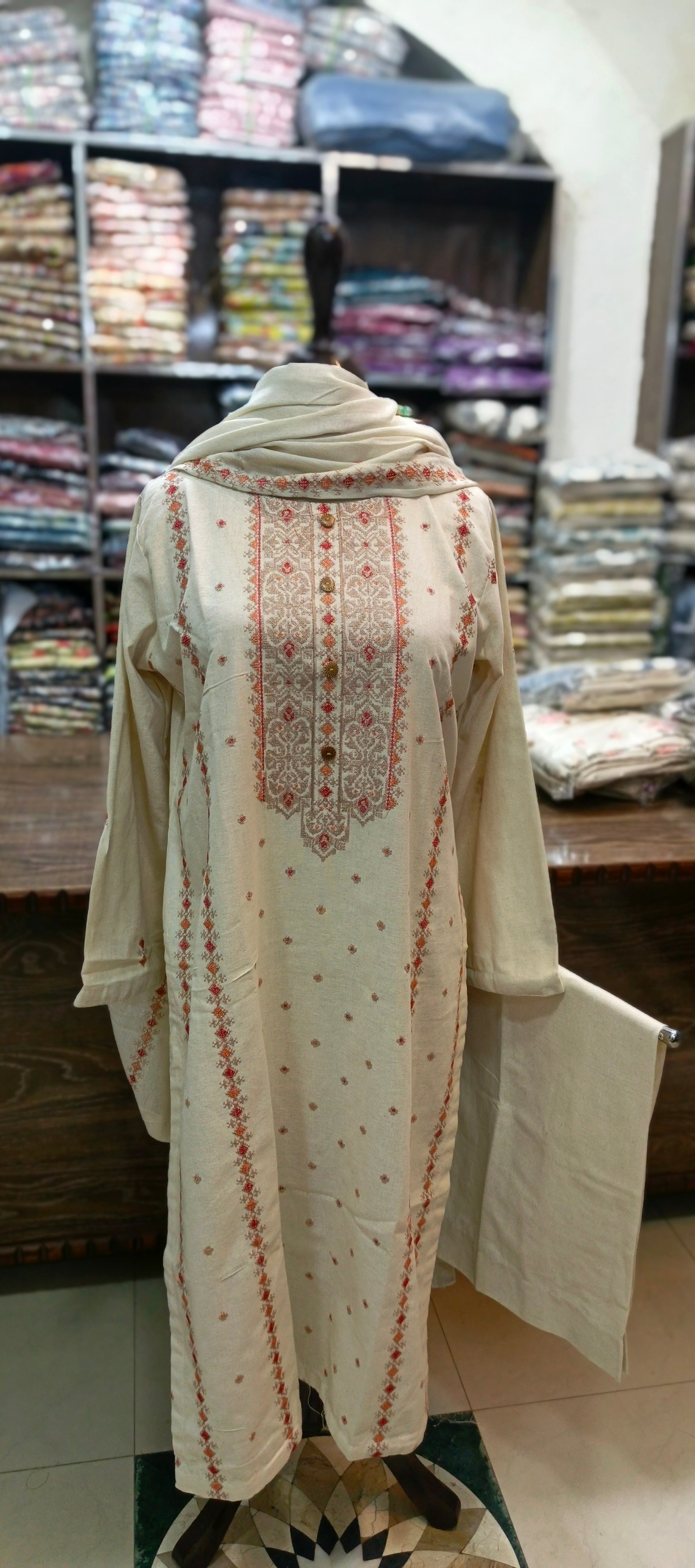 Karandi khaddar embroidered stiched 3 pc