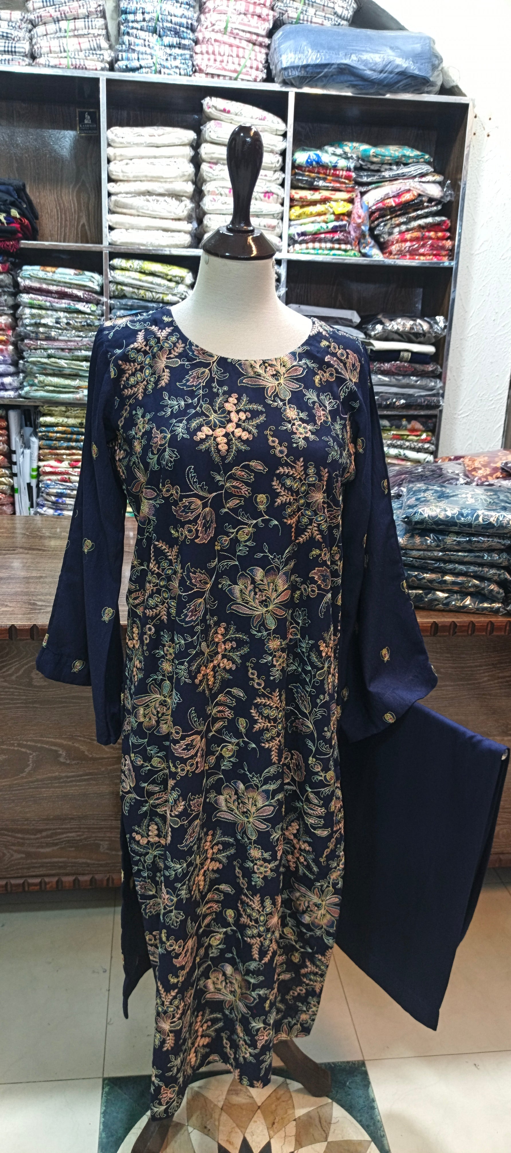 This 2 -piece KARANDIid summer EMBROIDERED STICHED 2 PC features a 48-inch shirt and 38/39-inch trousers in a sleek, stitched style. With straight cut, this set offers a professional and sophisticated look. Made with high-quality karandi fabric, this set is both comfortable and durable