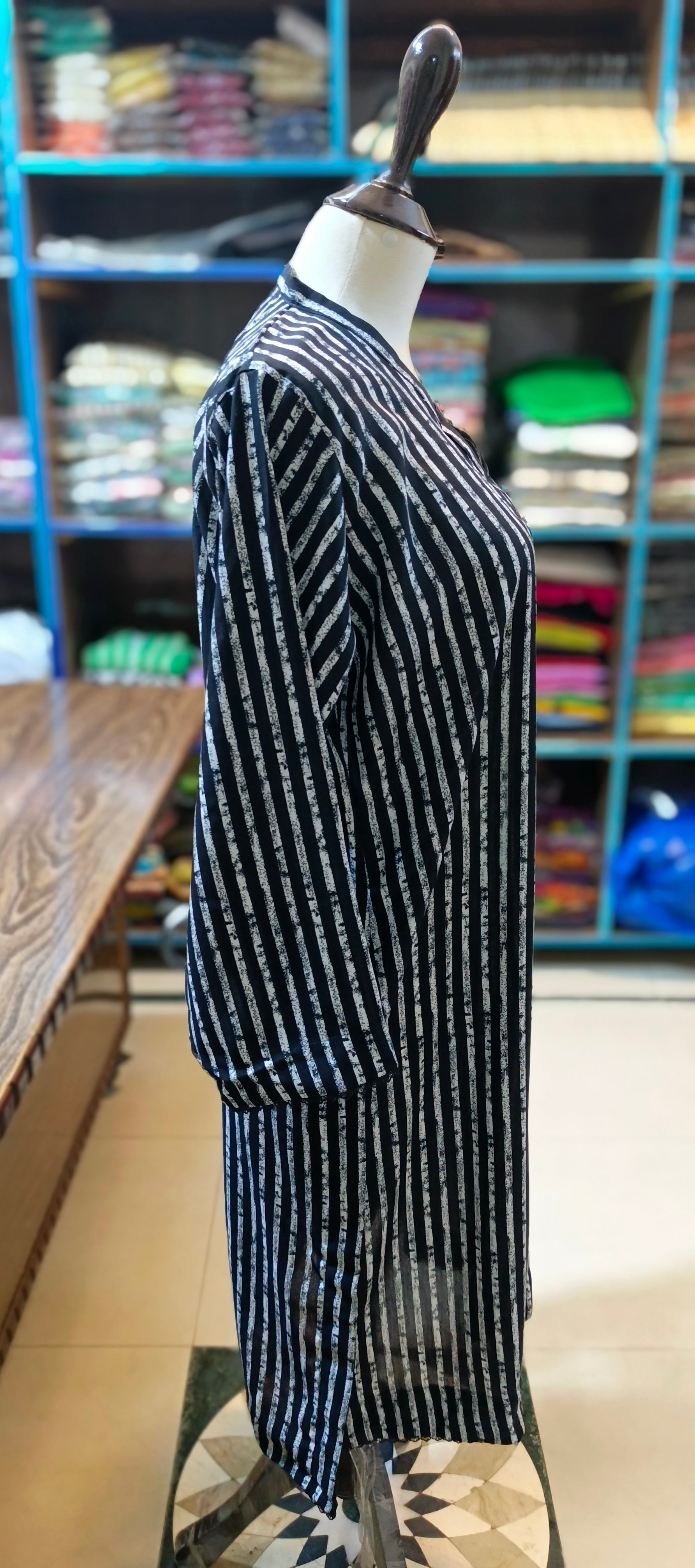 This 2-piece linen co ord set features a 43 inch shirt and 38/39 inch trousers in a sleek, stitched style. With a front open design and straight cut, this set offers a professional and sophisticated look. Made with high-quality linen, this set is both comfortable and durable.