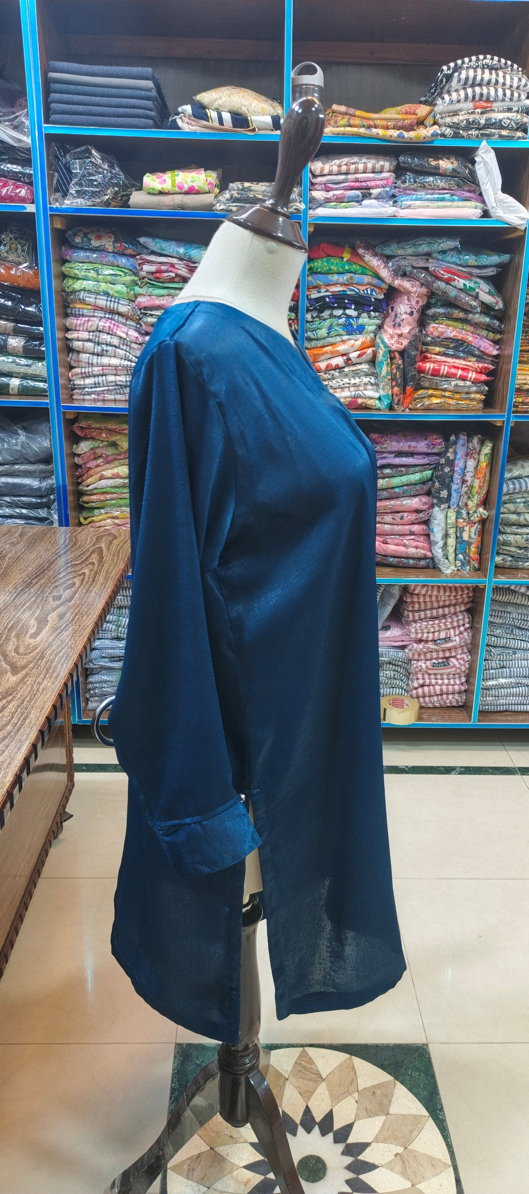 This velvet silk short co ord set includes a straight-cut shirt and pants for a stylish yet comfortable outfit. The smooth velvet fabric adds a touch of luxury, while the straight cut offers a flattering silhouette. Elevate your wardrobe with this 2 pc set.